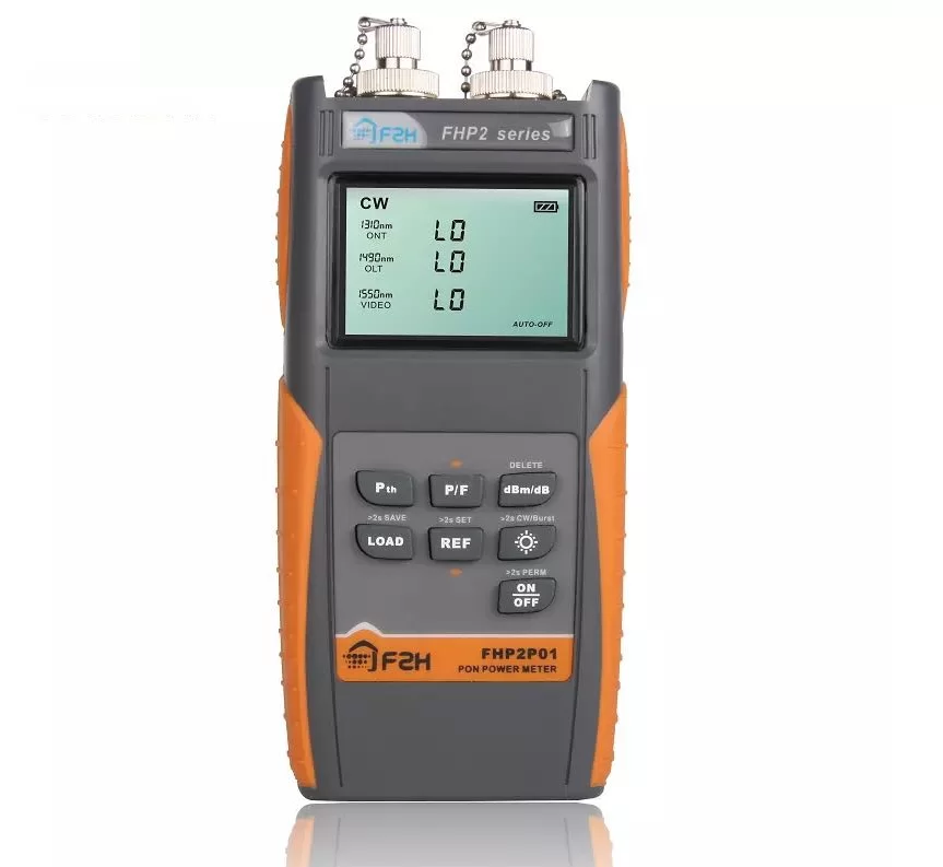 Это измеритель мощности для пассивных оптических сетей (PON). Прибор способен измерять мощность на всех трех длинах волн 1310, 1490 и 1550 нм, передающих данные, голос и видео (triple-play сервисы) по одному волокну. Прибор подключается в разрыв линии, пропуская через себя нисходящий трафик на 1490/1550 нм и восходящий импульсный трафик от ONT на 1310 нм в то время когда ONT находится в режиме ожидания.