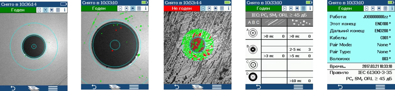 • Автоматический анализ качества разъема на соответствие стандарту IEC-61300-3-35 (возможность установить собственный стандарт)