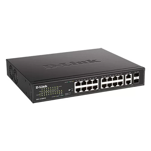 DES-1018MPV2/A1A торговой марки D-LINK представляет собой неуправляемый коммутатор без поддержки стекирования. Сетевой коммутатор оснащен 16 портами RJ-45 10/100Base-TX с поддержкой технологии PoE, из которых 2 комбо-порта 10/100/1000Base-T/SFP.