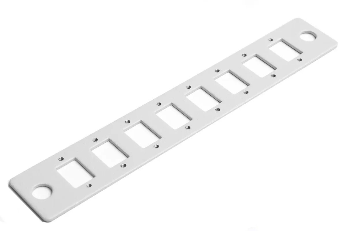 Сменная планка предназначена для установки оптических адаптеров FC/ST, для КРС 144 КРН Сделана из листового металла, окрашена в серый цвет, используется в стоечных кроссах для установки оптических розеток.
