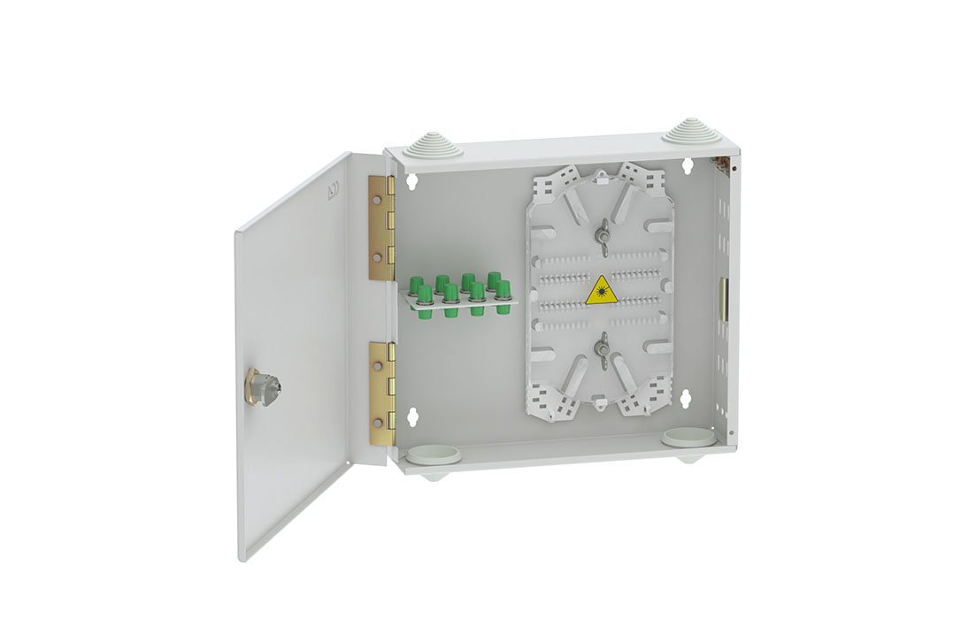 Оптические кабели разделываются и фиксируются в зоне ввода. Далее волокна в модулях поступают на кассеты для сварки с пигтейлами.