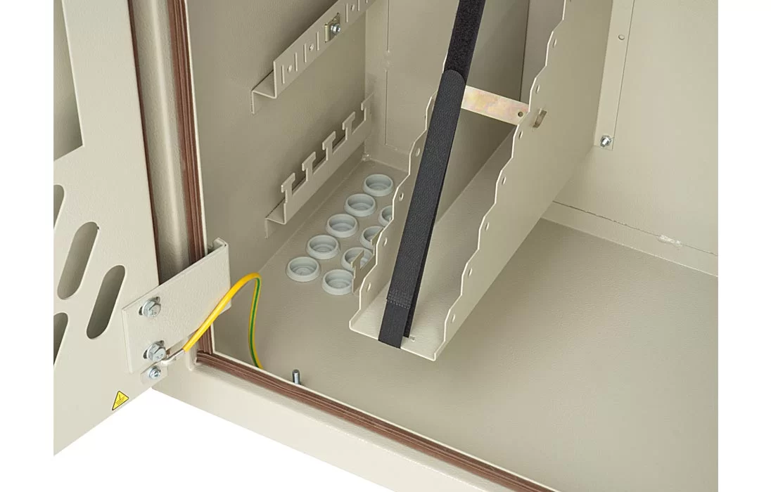Оптические кабели вводятся в шкаф через отверстия в верхней и нижней стенках.