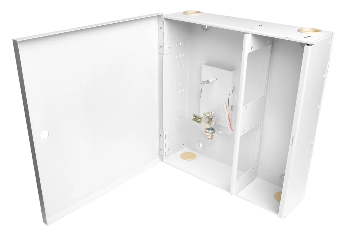 По конструкции и материалу оптический кросс ШКОН-48 аналогичен ШКОН-32. Отличает модель увеличенные габаритные размеры для размещения 48 коммутационных соединений и откидывающаяся боковая планка распределительного отсека для удобства обслуживания патч-кордов. Монтажный отсек ШКОН-48 адаптирован под установку 4-х сплайс-кассет с крышкой. Для установки проходных розеток типов FC type D, SC, ST, LC-duplex, MT-RJ можно использовать 6-ть съемных адаптерных панелей. На боковой поверхности кросса есть перфорированные отверстия, предназначенные для установки стяжек и организации кабеля.