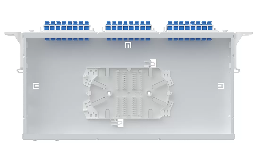 Крепление кабеля по оболочке осуществляется металлическим хомутом и/или нейлоновыми стяжками, на Т-образном лепестке. Центральный силовой элемент крепится при помощи металлической скобы. Сменные пластиковые планки на 4 и 8 отверстий обеспечивают установку адаптеров-розеток различных типов: FC, SC, ST, дуплекс LC.
