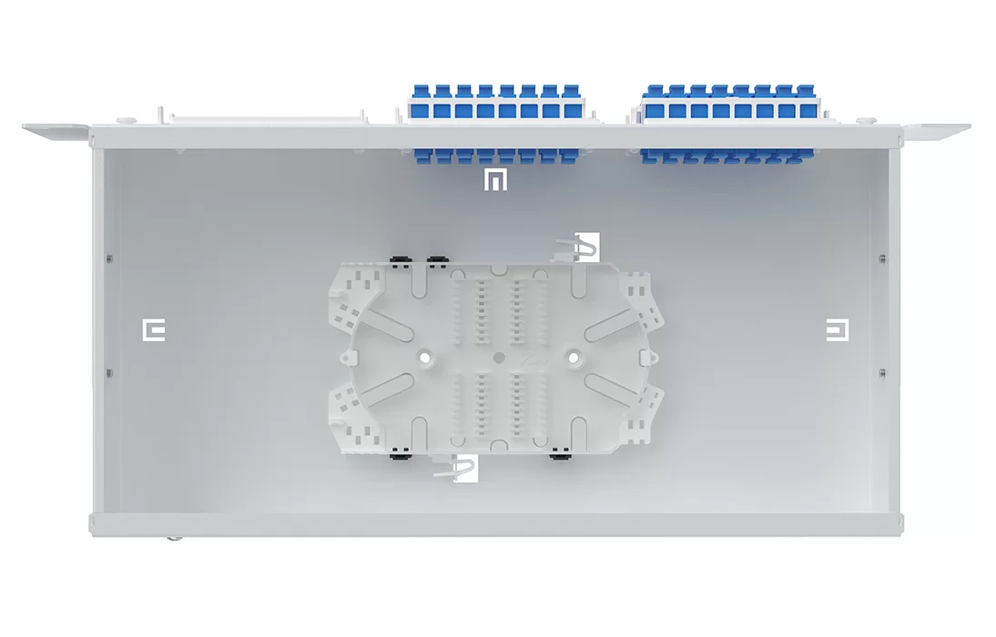 Крепление кабеля по оболочке осуществляется металлическим хомутом и/или нейлоновыми стяжками, на Т-образном лепестке. Центральный силовой элемент крепится при помощи металлической скобы. Сменные пластиковые планки на 4 и 8 отверстий обеспечивают установку адаптеров-розеток различных типов: FC, SC, ST, дуплекс LC.