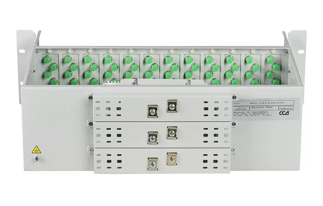 Предназначен для концевой заделки, распределения и коммутации оптических волокон волоконно-оптических кабелей, и устанавливается в стойках монтажных или шкафах телекоммуникационных типоразмера 19'', а при доукомплектации дополнительными кронштейнами в стойках и шкафах типоразмеров 21'' (ETSI) и 23''.