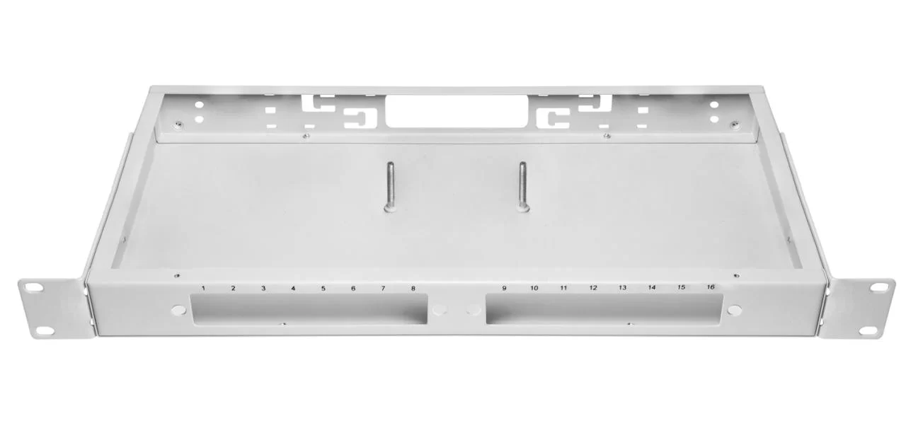 Cтоечный ШКОС-16 для установки в 19" шкаф или стойку строго соответствует метрическим размерам и предназначен для концевой заделки, распределения и коммутации оптических кабелей связи. Высота кросса - 1U. Емкость оптического кросса – до 16 оптических портов FC, ST, SC, MT-RJ типов. Конструкция кросса ШКОС-16 предусматривает специальные гнёзда для установки адаптерных планок. На лицевой части корпуса нанесена маркировка портов. Корпус стоечного оптического кросса изготовлен из стали и покрыт порошковой краской