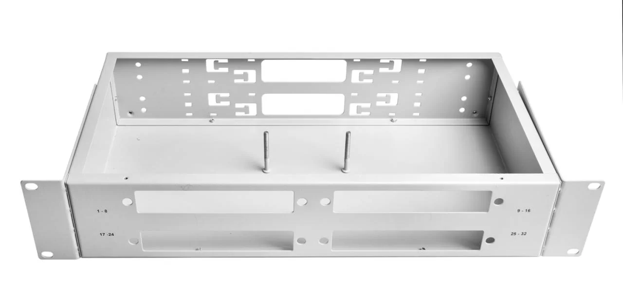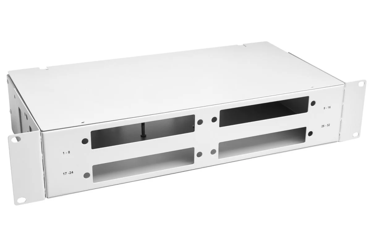 Оптический кросс стоечный ШКОС-32 для установки в 19" шкаф или стойку строго соответствует метрическим размерам и предназначен для концевой заделки, распределения и коммутации оптических кабелей связи. Высота кросса - 2U. Емкость оптического кросса – до 32 оптических портов FC, ST, SC, MT-RJ типов. Конструкция рэкового кросса ШКОС-32 предусматривает специальные гнёзда для установки адаптерных планок. На лицевой части корпуса нанесена маркировка портов. Корпус стоечного оптического кросса изготовлен из стали и покрыт порошковой краской