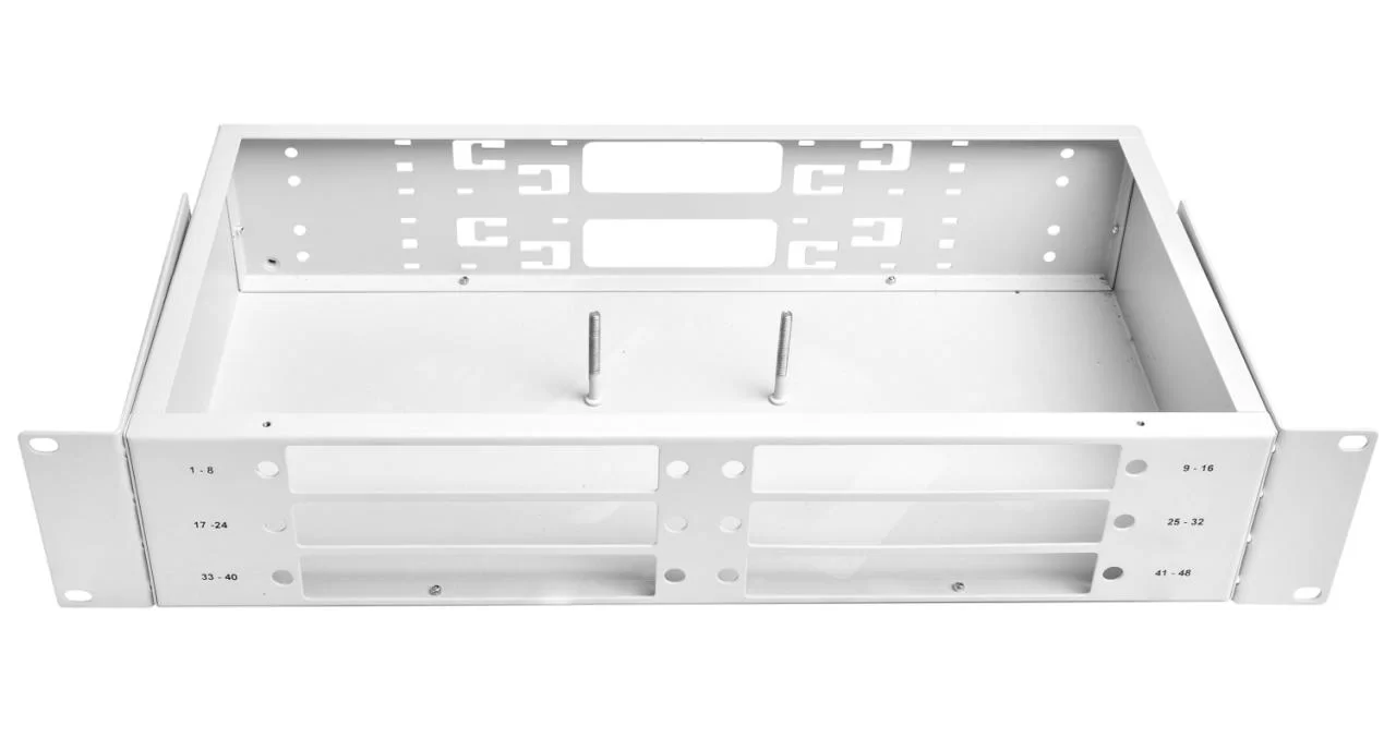 ШКОС-48 применяется для установки в 19" шкаф или стойку.строго соответствует метрическим размерам и предназначен для концевой заделки, распределения и коммутации оптических кабелей связи. Высота кросса - 2U. Емкость оптического кросса – до 48 оптических портов FC, ST, SC, MT-RJ типов. Конструкция рэкового кросса ШКОС-48 предусматривает специальные гнёзда для установки адаптерных планок. На лицевой части корпуса нанесена маркировка портов. Корпус стоечного кросса изготовлен из стали и покрыт порошковой краской