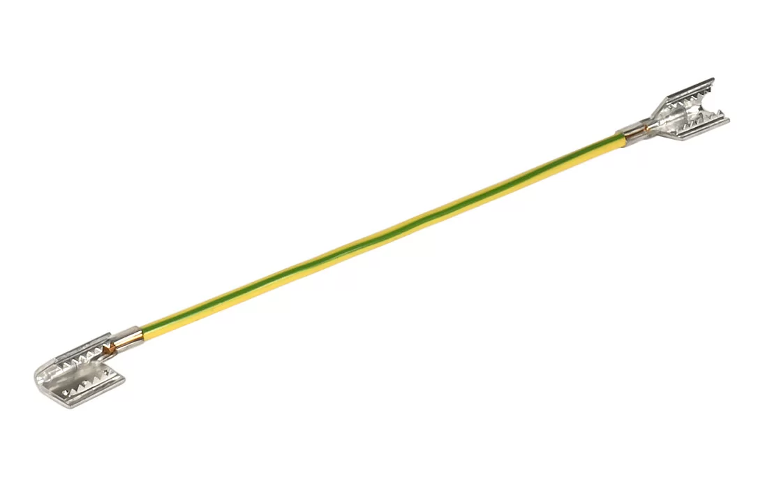 Состоит из отрезка провода оконцованного с двух сторон механическими, безвинтовыми зажимами.