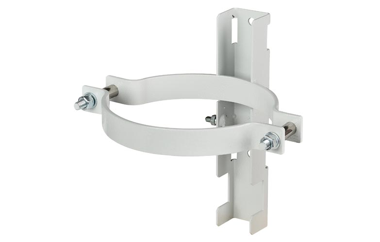 К столбовым опорам кронштейн крепится в помощью двух ленточных хомутов, а к стенам с помощью двух дюбелей и шурупов диаметром 6-8 мм. Крепежные элементы в комплект поставки не входят и приобретаются отдельно.