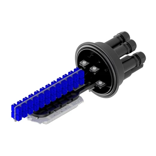 Оптические кросс-муфты ОКМ-5120-48SC-324-4М3(8)/4Т-18К/2PLC8 предназначены для защиты мест сварки оптического кабеля. Конструкция кросс-муфты ОКМ-5120 позволяет сращивать несколько кабелей вместе, а расширенное внутреннее пространство дает возможность уложить транзитные модули с соблюдением всех допусков.
