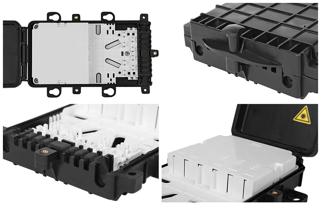 Выполнена из устойчивого к атмосферным воздействиям УФ стойкого пластика и имеет пыле-влагозащищенную тупиковую конструкцию (ввод ОК и вывод абонентских дроп-кабелей производится с одной стороны).