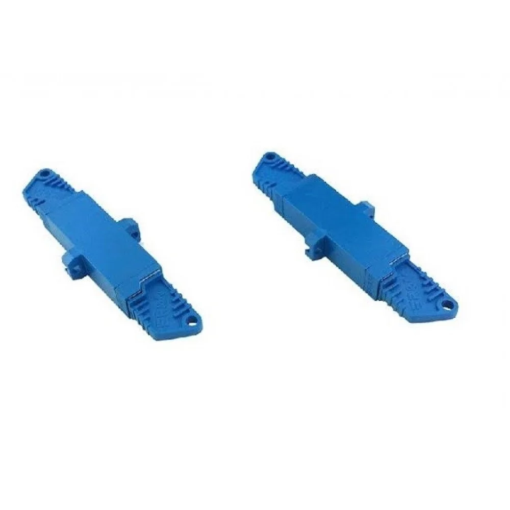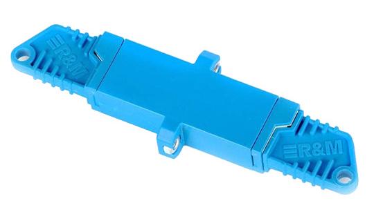 Корпус оптического адаптера E2000/UPC выполнен из пластика синего цвета. Крепление к патч-панели осуществляется с помощью винтов.