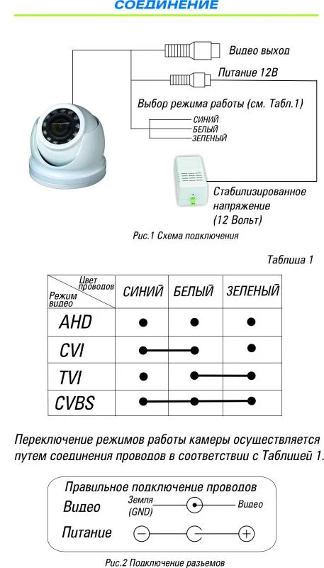 | Формат видео | AHD/TVI/CVI/CVBS |