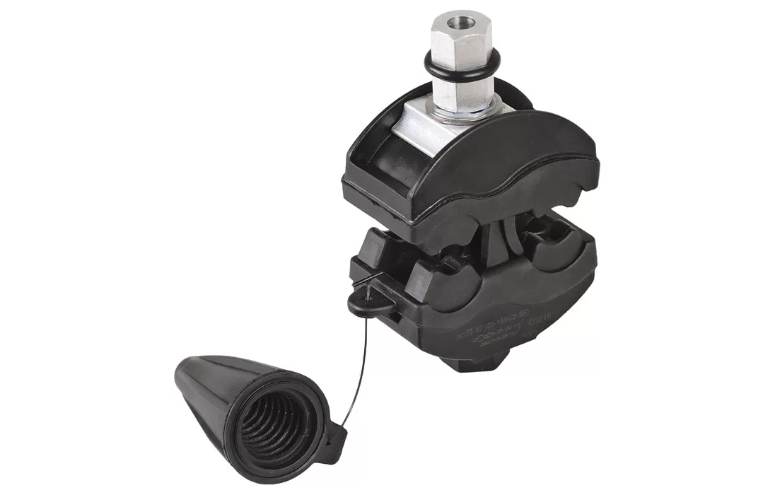 Предназначен для подключения ответвляющихся линий к магистральной. Посредством прокола соединяются два провода без удаления изоляционного слоя. Чтобы предупредить окисление в месте прокола внутри есть специальная смазка, а контакт обеспечивается пластинами с пирамидальными зубьями и калиброванной головкой срывного типа. Зажимы оснащены второй головкой для демонтажа, оставаясь при этом продуктом одноразового монтажа. Посредством их замены можно безопасно соединить провода или необходимые элементы цепи. Качественный зажим для СИП кабеля является гарантией максимально быстрого и безопасного монтажа. Отличительной особенностью продукта является высокое качество материалов изготовления. Сечение соединяемых изолированных проводников 25-150 мм² с 25-95 мм².