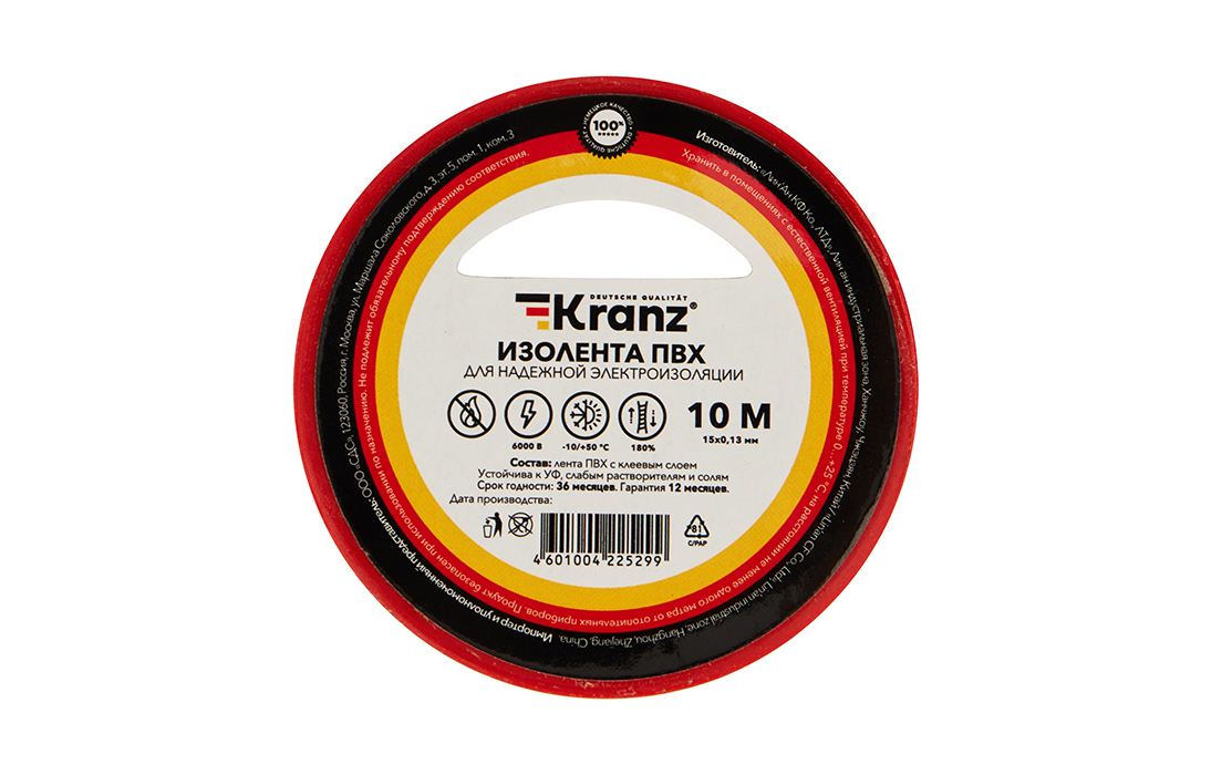 Изолента KRANZ предназначена для электрической изоляции, цветной маркировки, соединения, защиты от внешних факторов и герметизации кабелей, проводов и шнуров.