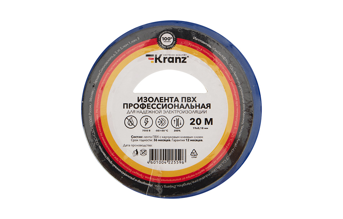 Профессиональная изоляционная лента KRANZ класса PREMIUM используется для электрической изоляции, цветной маркировки, соединения, защиты от внешних факторов и герметизации кабелей, проводов и шнуров.