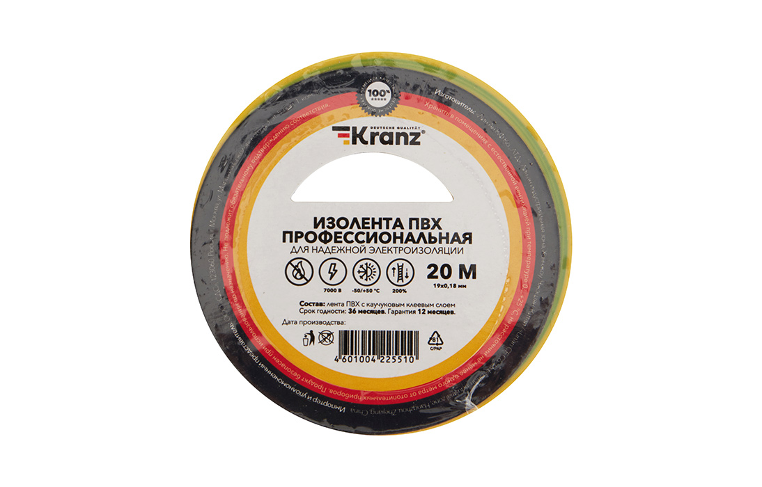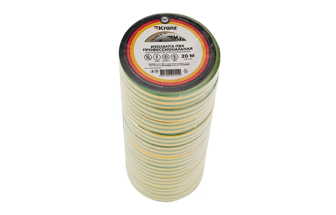 Профессиональная изоляционная лента KRANZ класса PREMIUM используется для электрической изоляции, цветной маркировки, соединения, защиты от внешних факторов и герметизации кабелей, проводов и шнуров.