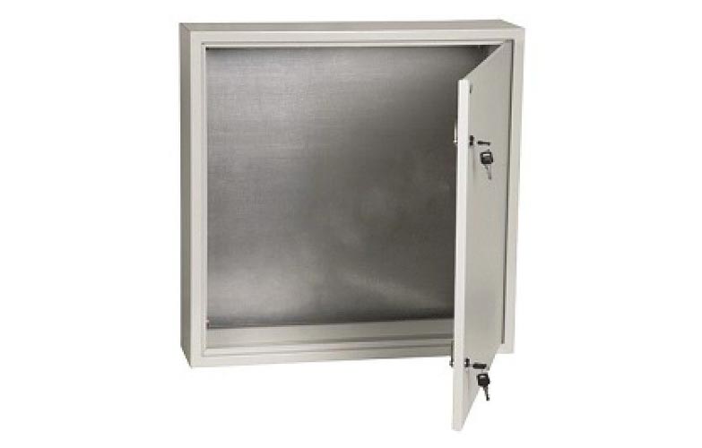 Сварной металлический корпус со съемной монтажной панелью. Дверца корпуса запирается на замок. Ключ замка имеет единый секрет. Корпуса со степенью защиты IP54, имеют на дверце уплотнение из двухкомпонентного герметика и пыле- влагонепроницаемый замок.