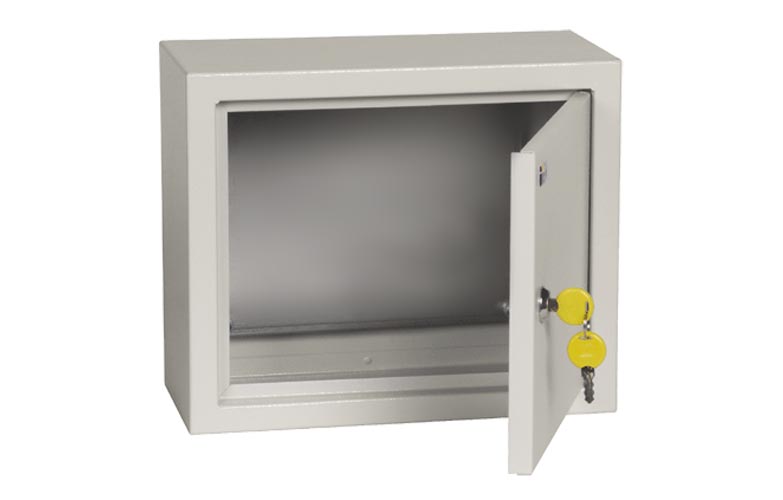 Сварной металлический корпус со съемной монтажной панелью. Дверца корпуса запирается на замок. Ключ замка имеет единый секрет. Корпуса со степенью защиты IP54, имеют на дверце уплотнение из двухкомпонентного герметика и пыле- влагонепроницаемый замок.