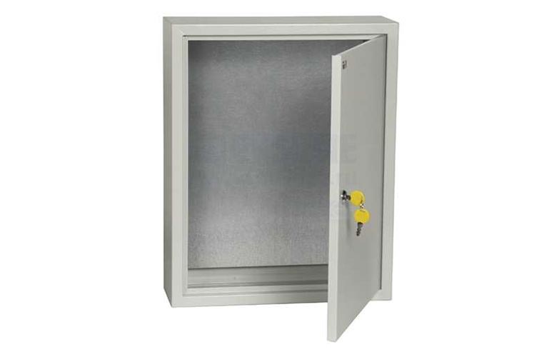 Сварной металлический корпус со съемной монтажной панелью. Дверца корпуса запирается на замок. Ключ замка имеет единый секрет. Корпуса со степенью защиты IP54, имеют на дверце уплотнение из двухкомпонентного герметика и пыле- влагонепроницаемый замок.