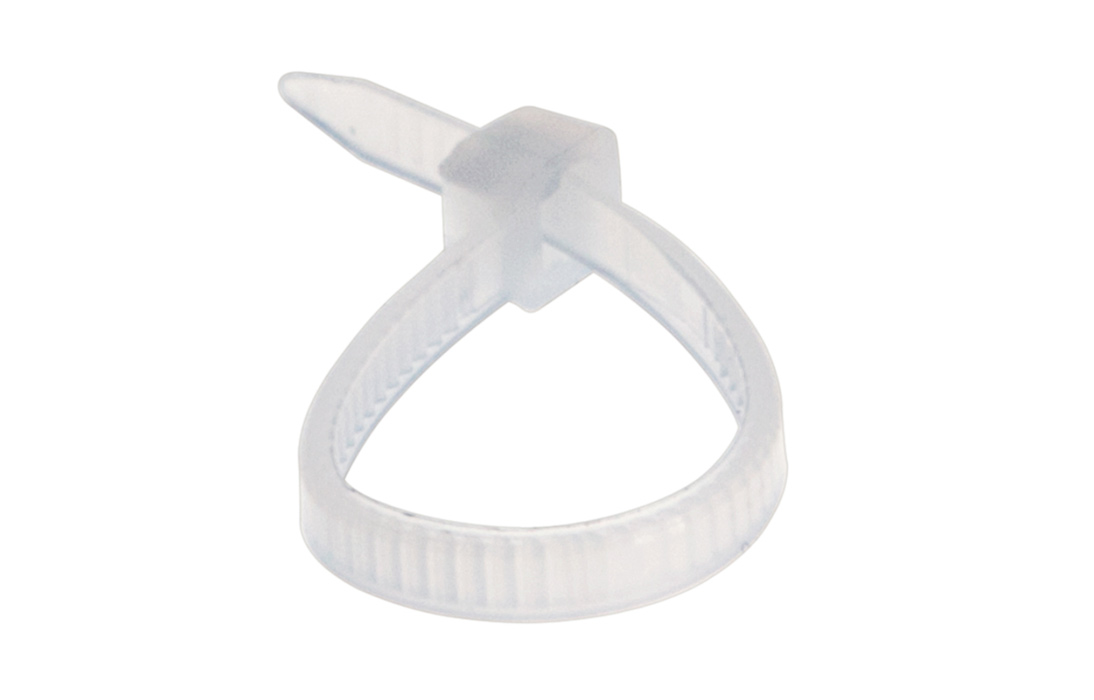 Представляет собой гибкую полоску из нейлона высокой прочности (полиамид-6,6) с замком на конце. Полиамид-6,6 — кристаллизующийся конструкционный материал, имеющий высокую твердость и механическую прочность, отличающийся высокими электроизоляционными свойствами. Имеет высокое сопротивление к основаниям, маслам, смазочным материалам, хлоридным растворителям. Не содержит галогенов.