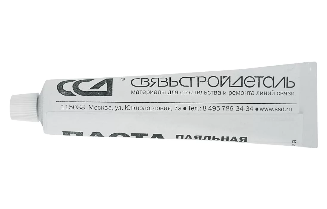 Используется в качестве флюса при залуживании стальных лент брони кабелей связи, а также для припайки опорных втулок к экранным лентам малогабаритных коаксиальных пар 1,2/4,6 в кабелях типа МКТ-4 и КМ-8/6 при монтаже муфт.