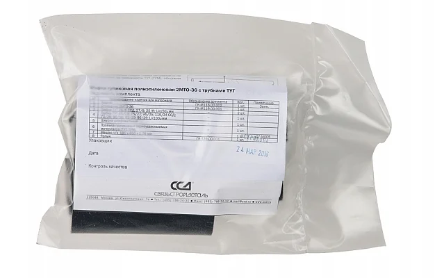 Для монтажа муфты дополнительно следует заказывать материалы для выполнения монтажных операций – материалы для сращивания жил ручной скруткой с пропайкой или однопарные врезные соединители, ленты для упаковки сростка, материалы для разделки бронированных кабелей.