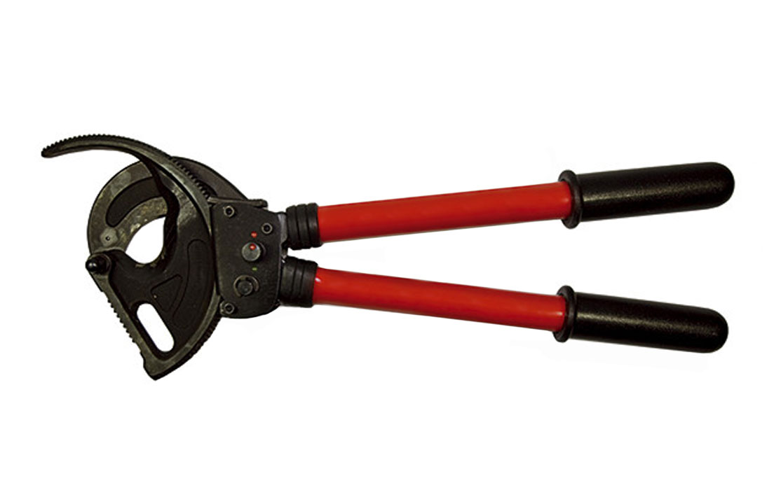 Резак для резания двумя руками с двухопорным эксцентриковым передаточным механизмом, прочное зубчатое зацепление поворотного ножа и зубчатого лезвия, режет многожильные и тонкие медные и алюминиевые кабели диаметром до 62 мм или 80 мм, также режет кабели с тонкой обмоткой из листовой стали или армированием из листовой стали на внешнем участке кабеля, не для закаленной стали.