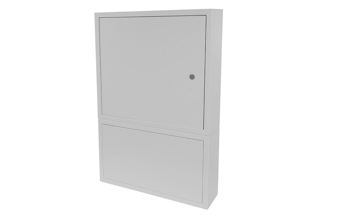 Высокая прочность материала и уплотнители дверей предотвращают попадание внутрь шкафа пыли, влаги и насекомых. Антивандальный замок с приводом на тяге обеспечивает блокировку двери в трех точках.