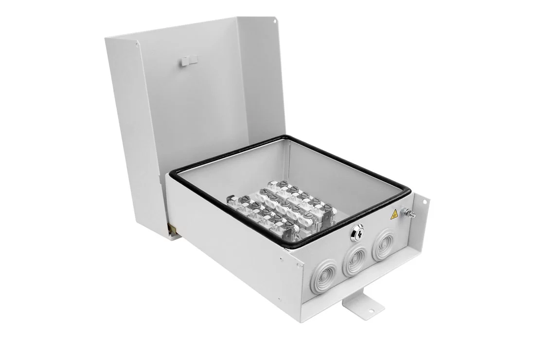 Конструкция крышки ящика исключает попадание внутрь воды даже при нарушении герметичности уплотнителей. Для предотвращения несанкционированного доступа ящик снабжен замком с универсальным секретом.
