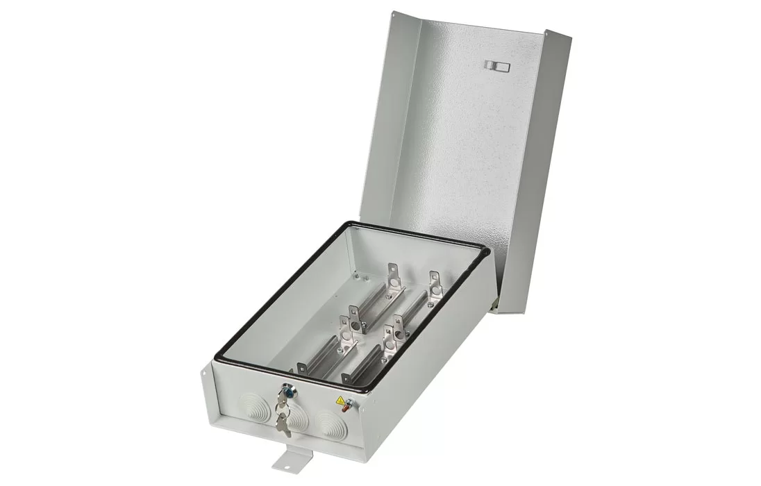 Конструкция крышки ящика исключает попадание внутрь воды даже при нарушении герметичности уплотнителей. Для предотвращения несанкционированного доступа ящик снабжен замком с универсальным секретом.