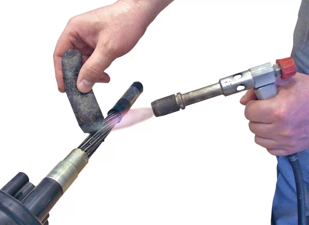 Для работы с термоусаживаемыми материалами следует понизить температуру пламени.