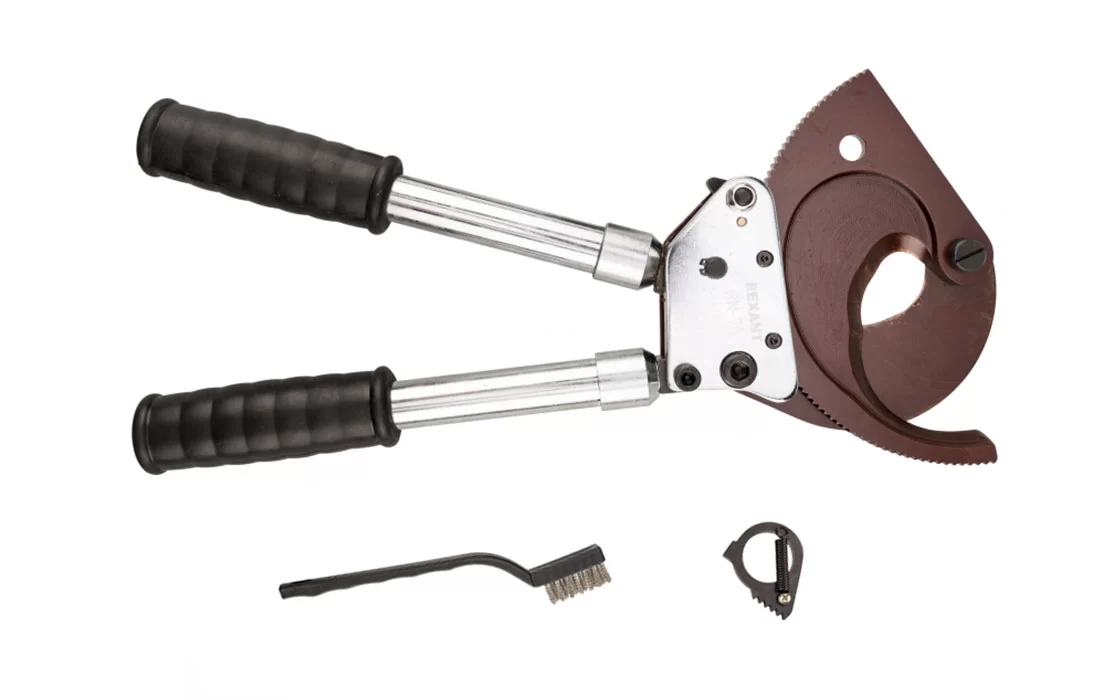 Инструмент предназначен для резки многожильных медных и алюминиевых кабелей, подходит для выполнения работ в профессиональной сфере и не требует специальных навыков в обращении. Для увеличения усилия предусмотрены выдвижные ручки.