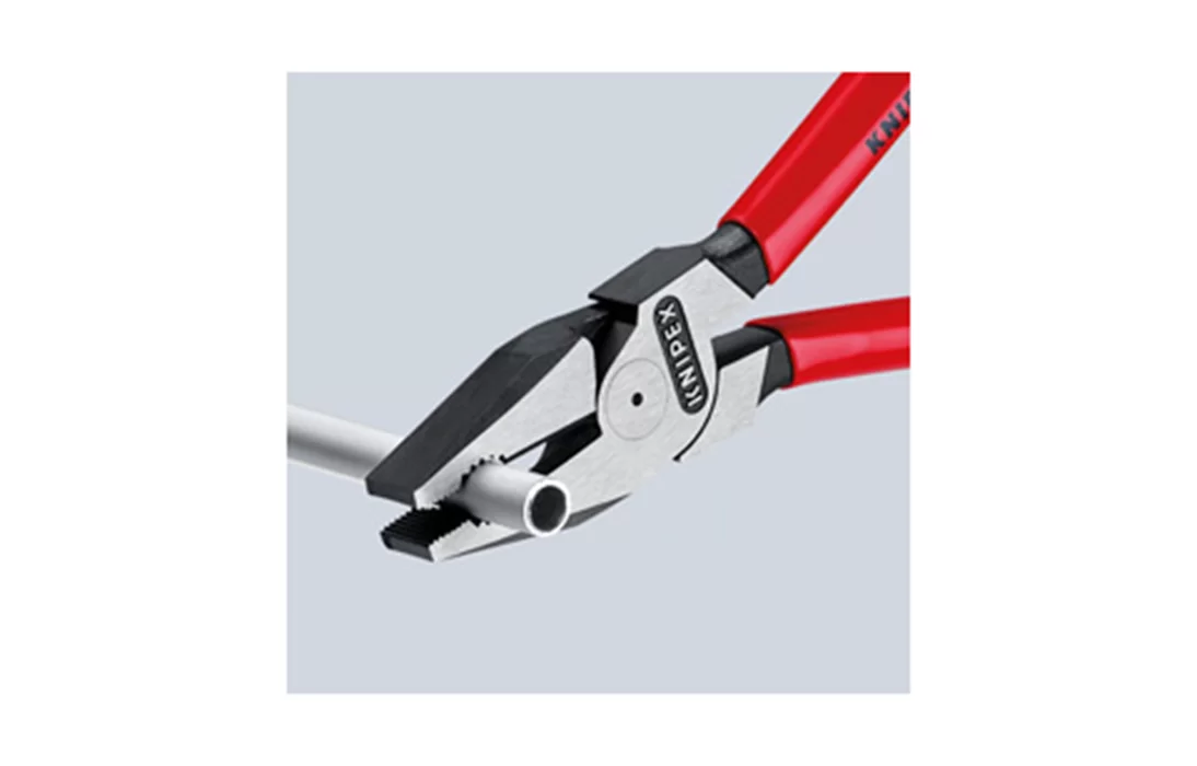 02 02 200 Плоскогубцы комбинированные особой мощности. Экономия усилия 35% по сравнению с обычными комбинированными плоскогубцами. C режущими кромками твердостью 63 HRC, для сложных условий работы. Легкая работа благодаря оптимальной передаче усилия. Легче резать, удобнее захватывать, гнуть и тянуть. Длинные режущие кромки для толстых кабелей. С зонами захвата плоских и круглых деталей. Режущие кромки дополнительно закалены токами высокой частоты до твердости примерно 63 HRC.