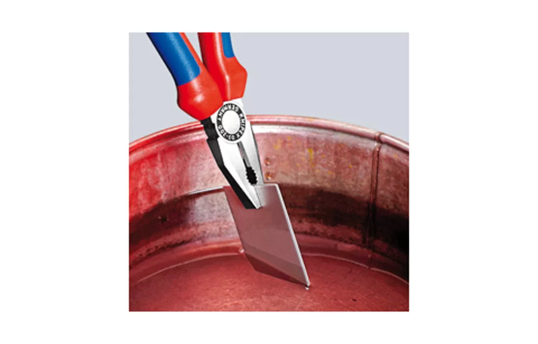 03 02 160 Плоскогубцы комбинированные с зонами захвата плоских и круглых деталей. С режущими кромками для мягкой и твердой проволоки. Длинные режущие кромки для толстых кабелей. Режущие кромки дополнительно закалены токами высокой частоты до твердости примерно 60 HRC. - Параметры резания / проволока средней твёрдости (диаметр): Ø 3,1mm