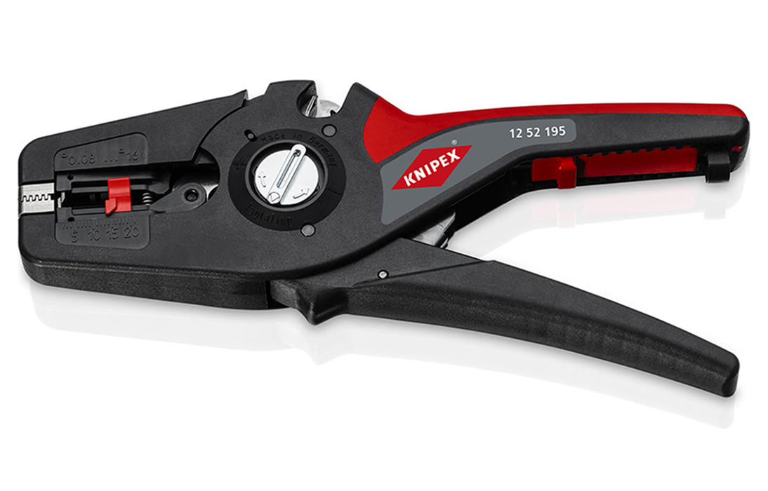 12 52 195 SB KNIPEX PreciStrip16 Простая, точная зачистка и резка как тонких проводов, так и одножильных круглых кабелей, всего одним инструментом с широким рабочим диапазоном – от 0,08 до 16 мм². Надёжный захват благодаря полукруглым рифлёным металлическим зажимам с желобками, и точный рез при помощи параболического лезвия. Патентованный автоматический механизм регулирует глубину резки; точная настройка лезвия под особые требования к материалу, например, из-за большой амплитуды температур. С регулируемым ограничителем длины для неизменно точной работы. Область подписи для индивидуализации. Комфортные эргономичные двухкомпонентные рукоятки. С креплением для подвеса для использования в системе страховки инструмента KNIPEX Tethered Tools. Быстросменная кассета с лезвием. Карта самообслуживания / блистер.
