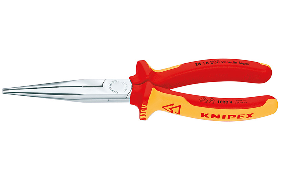 26 16 200 Длинногубцы с режущими кромками. Упругие наконечники: стабильность формы даже при перекашивании. Устойчивые к перекосу, упругие прецизионные наконечники. Полукруглые, длинные и зауженные губки. С режущими кромками для мягкой, средней и жесткой проволоки. Режущие кромки дополнительно закалены токами высокой частоты до твердости примерно 61 HRC. Прямые губки.