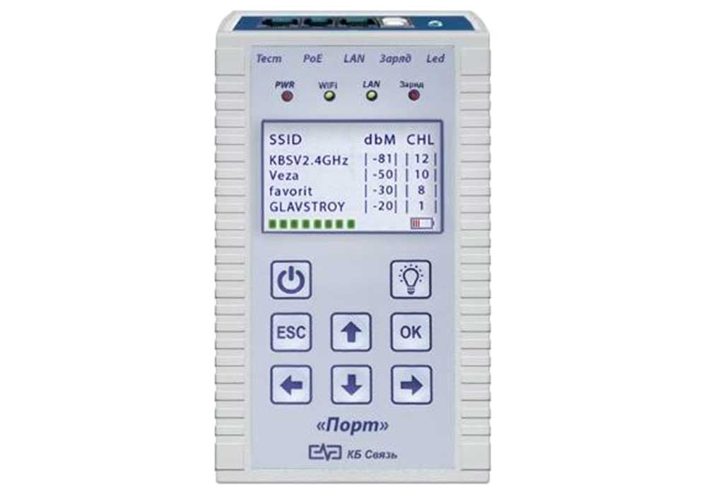 Предназначен для диагностики компонентов глобальных и локальных вычислительных сетей на физическом и сетевом уровнях. Прибор включает в себя Wi-Fi-тестер, LAN-тестер, измеритель первичных параметров (напряжения (U), сопротивления (R), емкости (C)) и генератор 1 кГц.