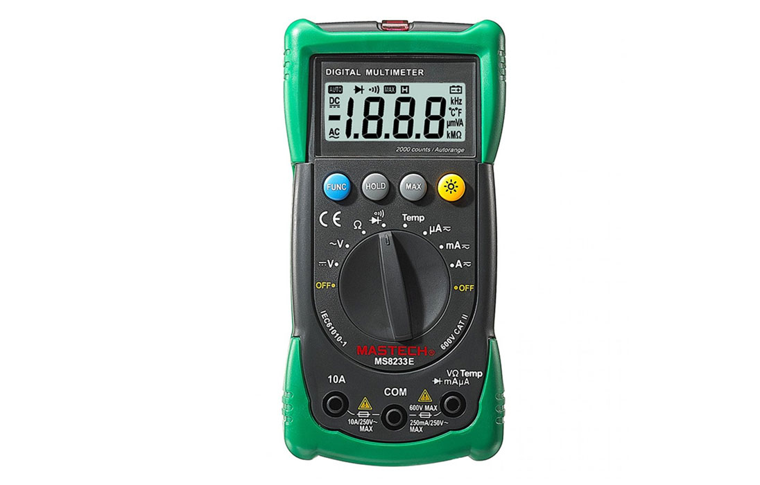 Мультиметр — электроизмерительный прибор, который включает в себя несколько функций и набор измеряемых параметров. Все приборы серии MS8233 измеряют постоянное и переменное напряжение, а также постоянный и переменный ток, сопротивление в цепи и даже температуру. С помощью данного прибора можно проводить тестирование диодов и осуществлять прозвонку целостности цепи. Мультиметр MS8233E оборудован специальным датчиком, с помощью которого вы бесконтактно сможете определить, есть ли напряжение на участке, например в розетке, если есть необходимость демонтировать ее, то с помощью данного мультиметра вы сможете сразу узнать, если ли в ней напряжение. Таким образом, один прибор сможет заменить сразу несколько устройств одновременно.
