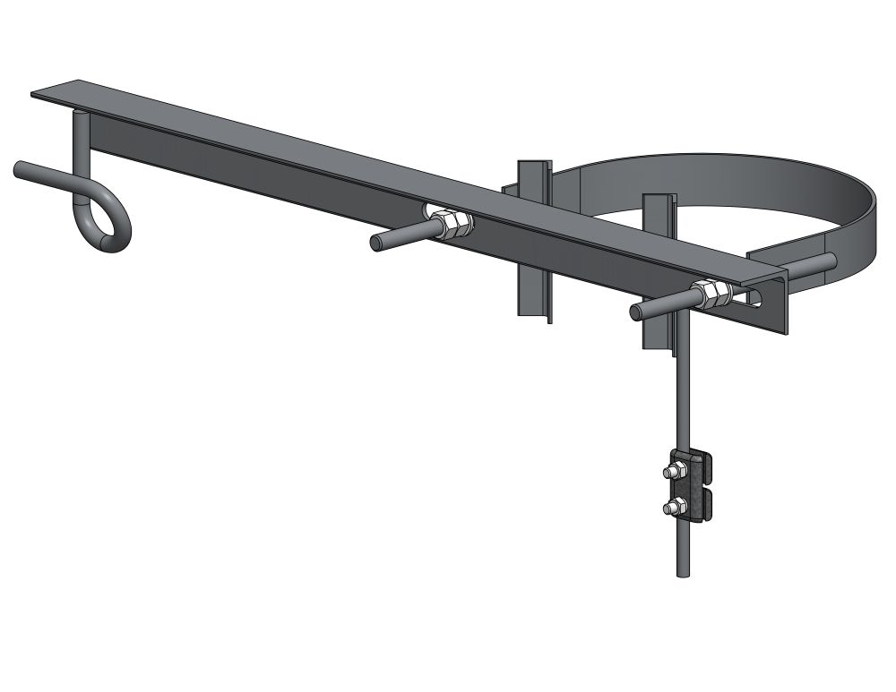 Узел подвески ВОК на железобетонных опорах КС на кронштейне с серьгой выпускается в двух исполнениях 411307-ТМП-121 (130801-03013) и 411307-ТМП-121-01 (130801-03014) для опор диаметром 300-350 мм и 350-390 мм соответственно.