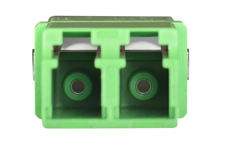 Корпус розетки выполнен из пластика зеленого цвета. Стыковка наконечников оптических соединителей осуществляется при помощи прецизионной центрирующей втулки, изготовленной из циркониевой керамики. Фиксация разъёмов осуществляется с помощью скрытых защелок. На присоединительных частях корпуса адаптера имеются выемки под ключ вилок коннекторов.