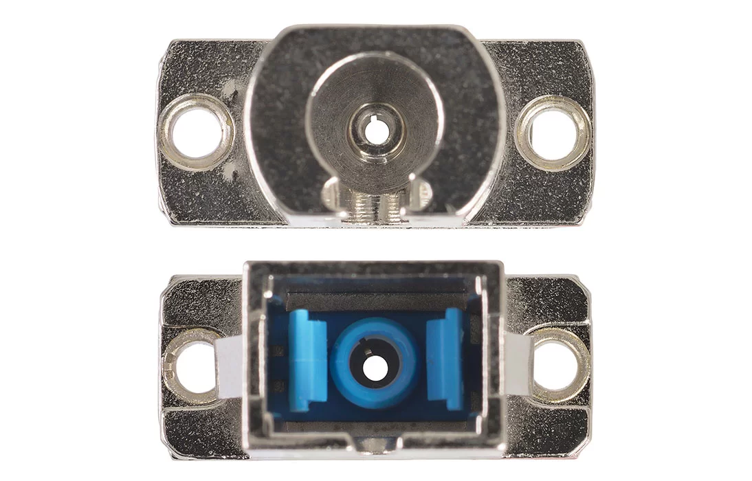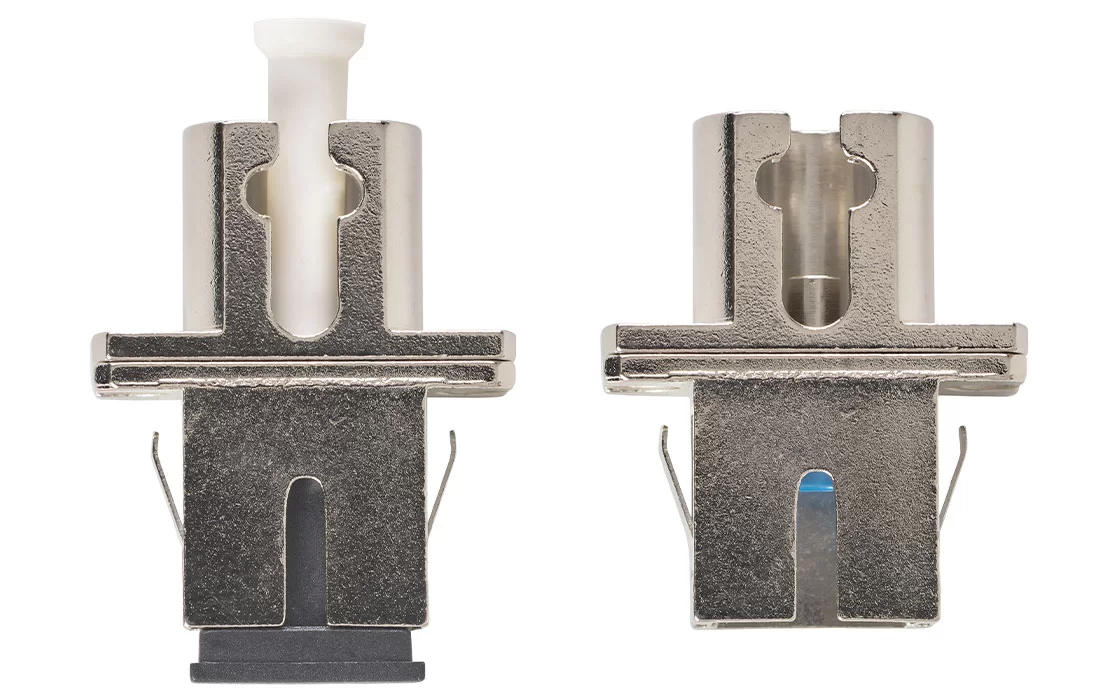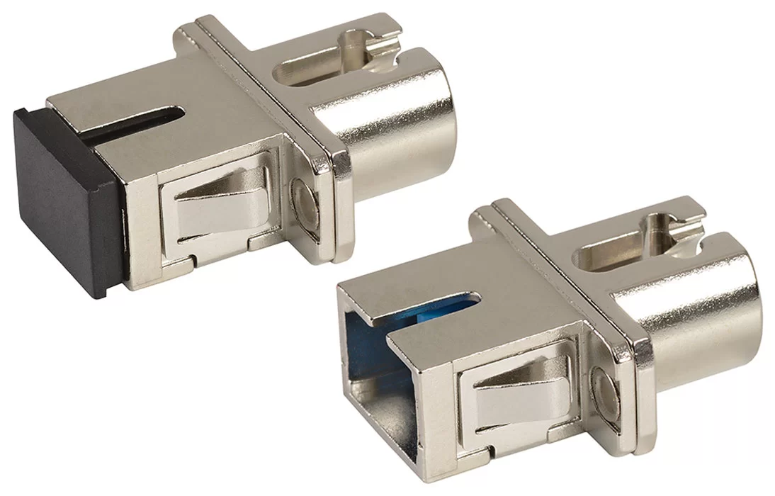 Фиксация разъёма SC-типа осуществляется с помощью скрытых защелок, а разъёма LC-типа посредством фиксатора на корпусе коннектора, который цепляется за специальный паз в корпусе розетки. На присоединительных частях корпуса адаптера имеются выемки под ключ вилок коннекторов.