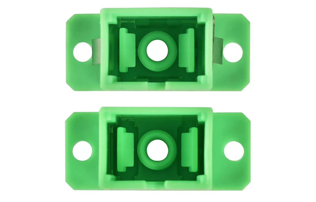 Корпус розетки выполнен из пластика зелёного цвета. Стыковка наконечников оптических соединителей осуществляется при помощи прецизионной центрирующей втулки, изготовленной из циркониевой керамики. Фиксация разъёмов осуществляется с помощью скрытых защелок. На присоединительных частях корпуса адаптера имеются выемки под ключ вилок коннекторов.