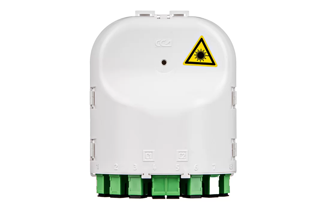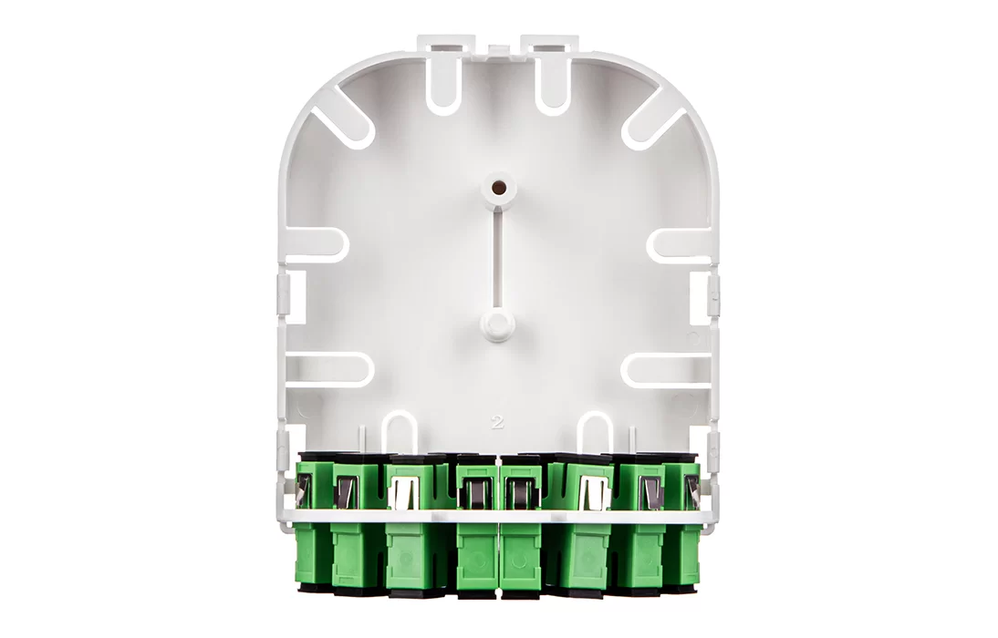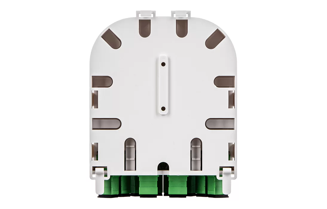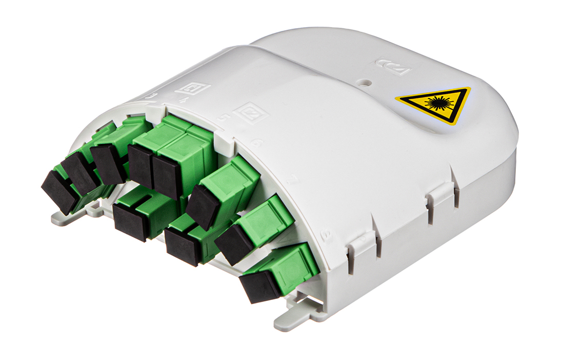Представляет из себя пластиковый корпус с местами для установки разветвителей и органайзерами для укладки волокон. На лицевой панели расположена адаптерная планка на 10 адаптеров SC типа. Закрывается защитной крышкой, выполненной как и корпус из пластика белого цвета.