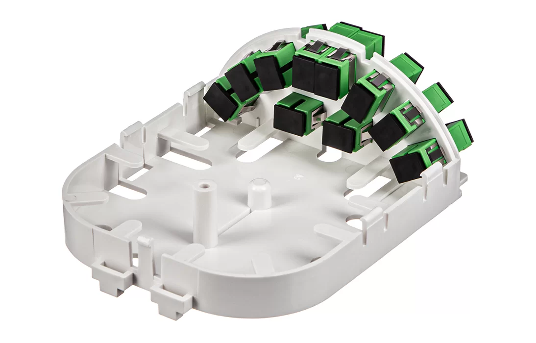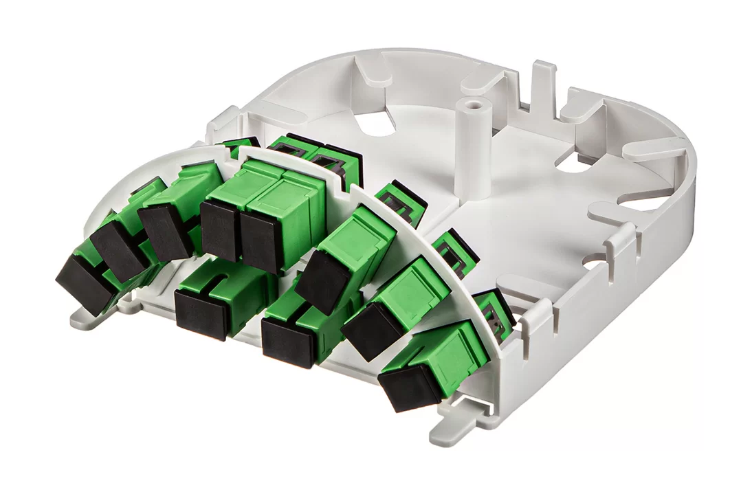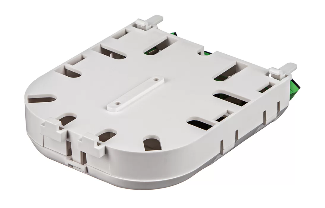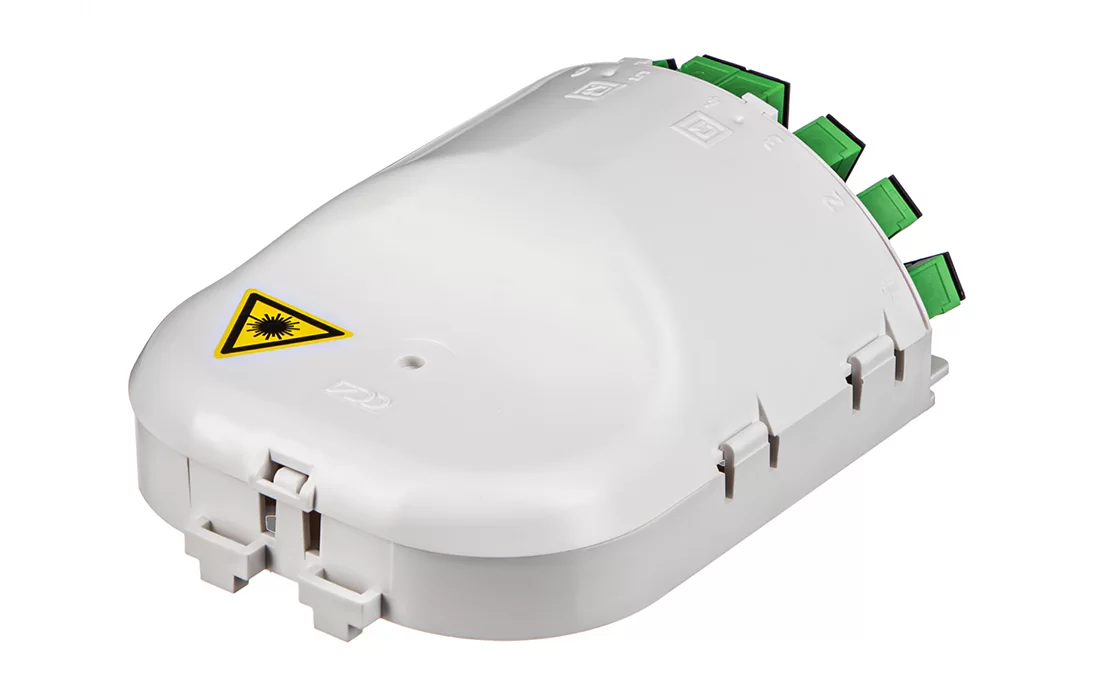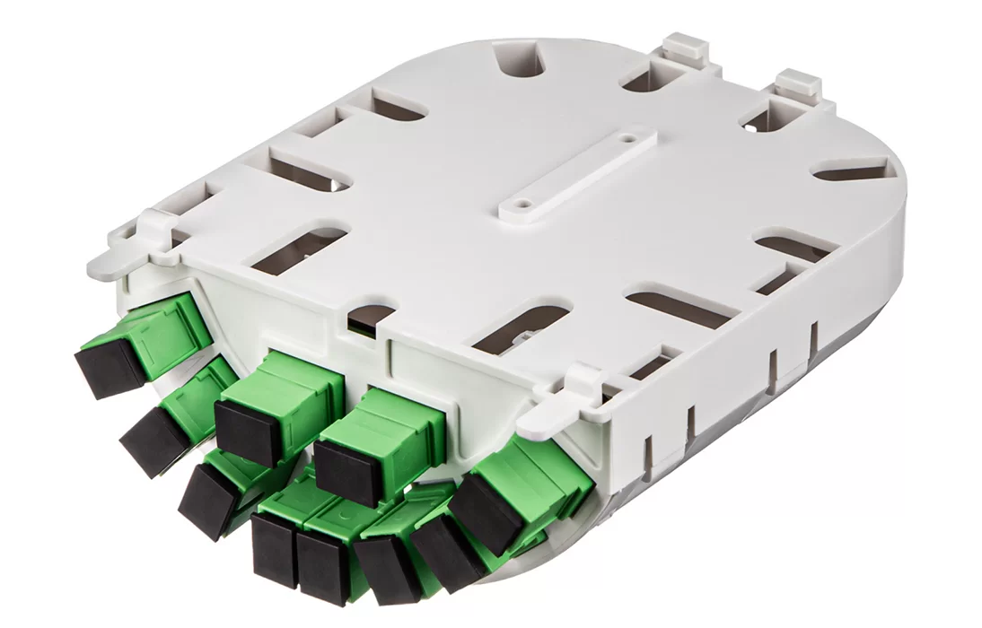 Представляет из себя пластиковый корпус с местами для установки разветвителей и органайзерами для укладки волокон. На лицевой панели расположена адаптерная планка на 10 адаптеров SC типа. Закрывается защитной крышкой, выполненной как и корпус из пластика белого цвета.