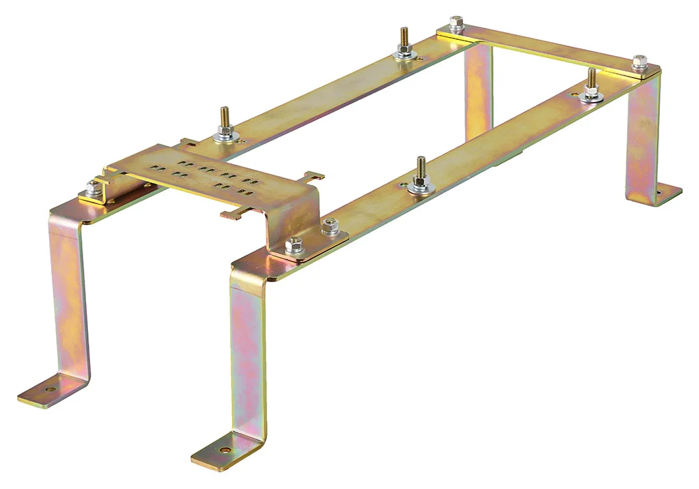 Крепление кронштейна к стенам осуществляется с помощью шурупов, а к столбовым опорам монтажной металлической лентой.
