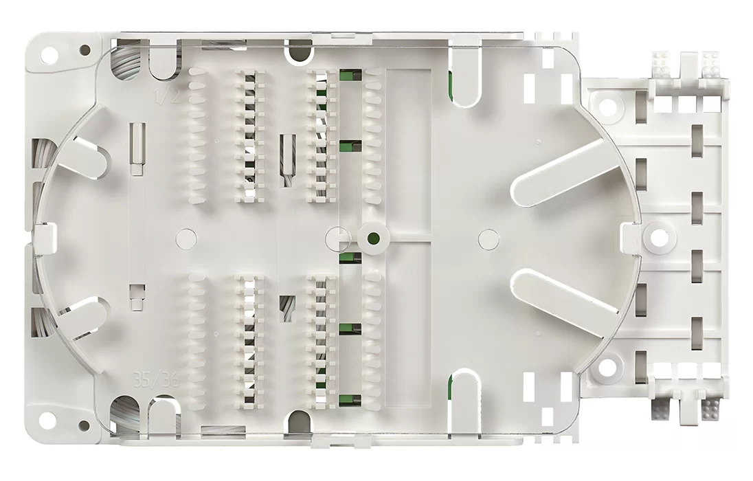 • размещение до 36 сростков оптических волокон (КДЗС 4525) распределительных ВОК и 10 сростков дроп-кабелей;