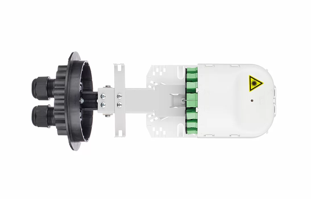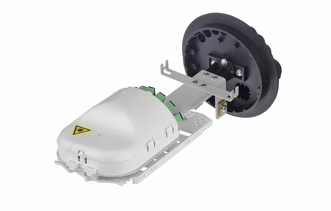 Выполнена из пластмассы и имеет пыле-брызгозащищенную тупиковую конструкцию (ввод ОК и вывод дроп-кабелей производится с одной стороны), с уплотнительной прокладкой на стыке кожуха с оголовником. Фиксация кожуха и оголовника осуществляется пластмассовым хомутом с рычажным замком.